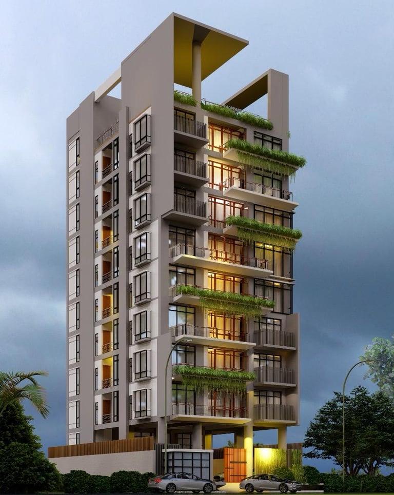Chic luxury apartments in Jolshiri with exclusive park view. Roads on both front and back allowing for superb ventilation and lots of natural light. Enjoy sunsets from your living room for a lifetime. 4 bedrooms with gym and other amenities.